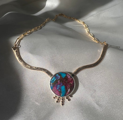 Sunray Spiny Oyster Turquoise Cuff Necklace