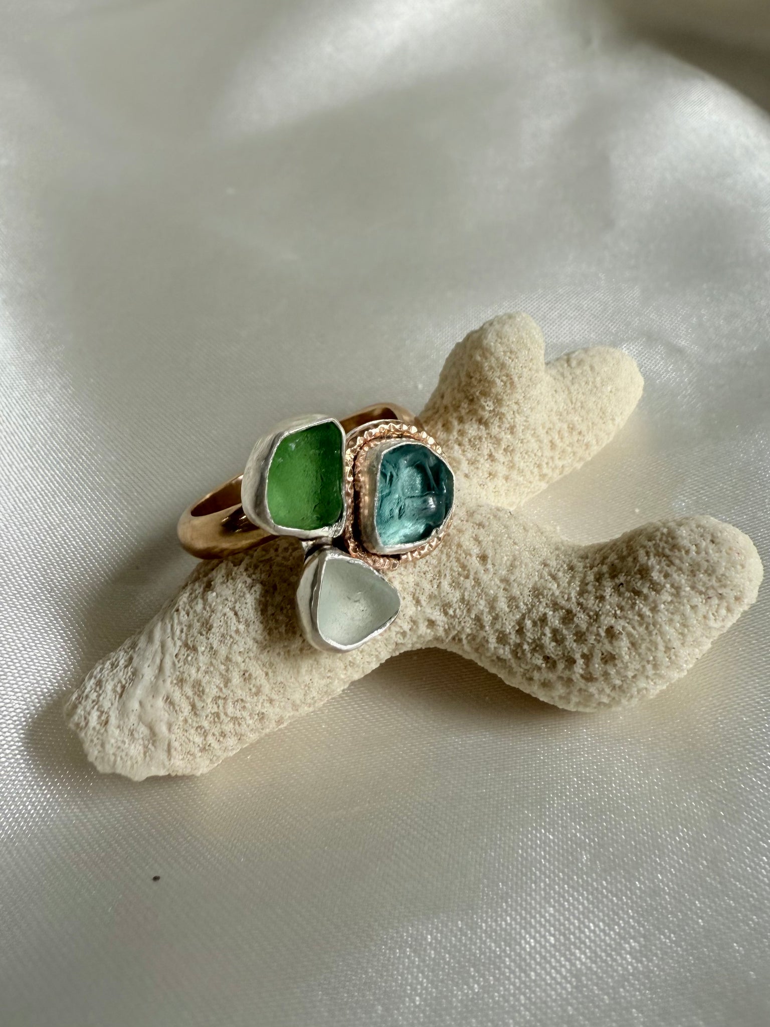 Sea Glass Cluster Ring